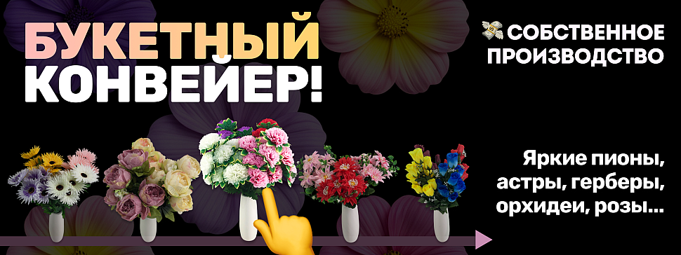 “Ритлайн” – это ваш гарантированный источник качественной и разнообразной искусственной флористики. Спешите пополнить свой ассортимент – наш букетный конвейер только набирает обороты!