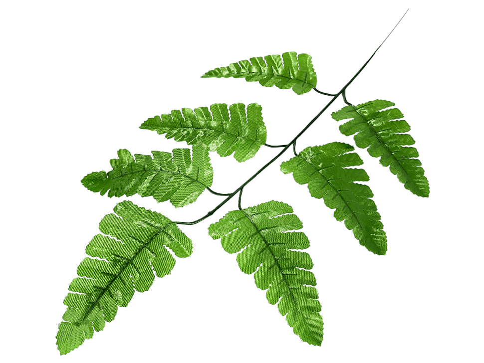 Для создания объёмных и фактурных композиций необходима зелень. В каталоге представлены листья папоротника, букеты пластикового папоротника, ветки зелени, а также отдельные листья различных растений. Также в ассортименте есть ветки яблони и манго с принтами, которые добавляют композициям натуральности и узнаваемости.