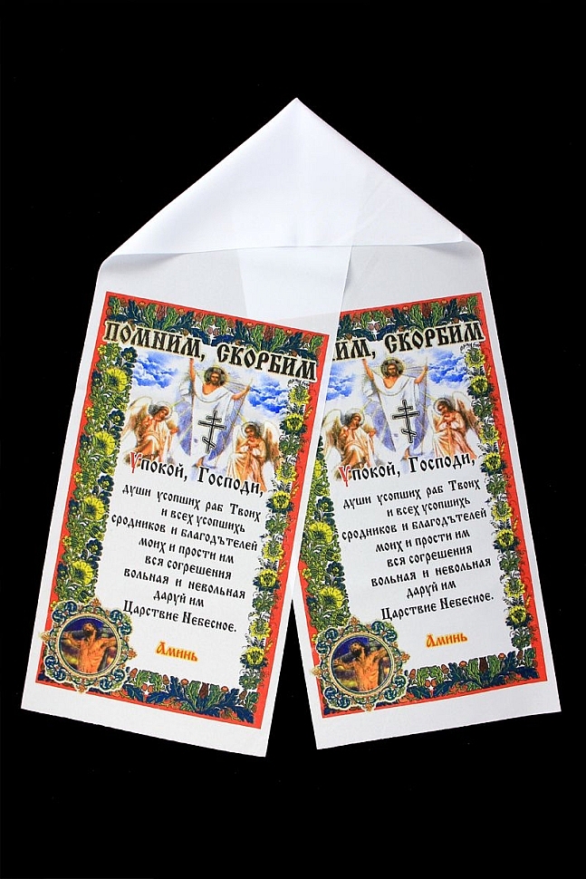 Рушники — важный элемент православной традиции. На габардиновых рушниках размещены молитвы и изображения ангелов. В ассортименте представлены рушники «Ангелы и молитва» и «Молитва об усопших», которые используются как при проведении панихид, так и для украшения мест захоронений в родительские дни.